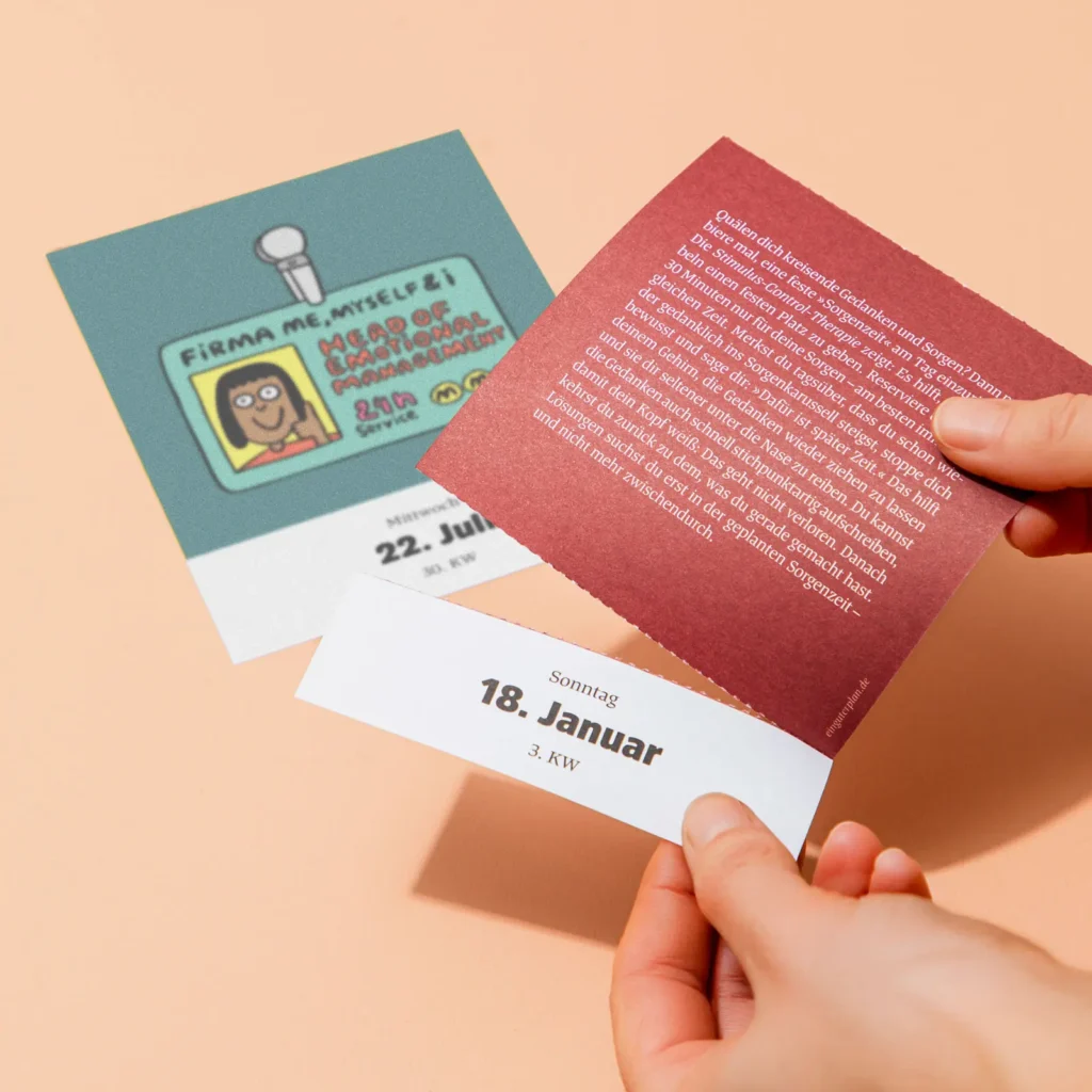 Jetzt kannst du jeden Tag mit Abriss starten! Unser Abreißkalender für 2026 bietet dir dafür das perfekte Ritual und inspiriert dich jeden Tag mit guten Impulsen, witzigen Illustrationen und wissenswerten Tipps aus Achtsamkeit und Psychologie. Ohne Zeigefinger und eben halbwegs entspannt.