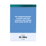 Ich liebe den Kalender! Ich habe aus dem Abreißen und lesen ein kleines Ritual gemacht und schaffe es endlich täglich ein wenig mehr Achtsamkeit in meinen viel zu vollen und stressigen Alltag zu bringen. Besser als mit jedem Planer zuvor (auch wenn ich die auch sehr mag und viel nutze).
