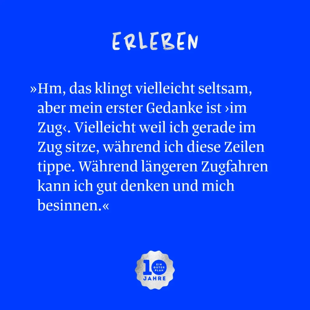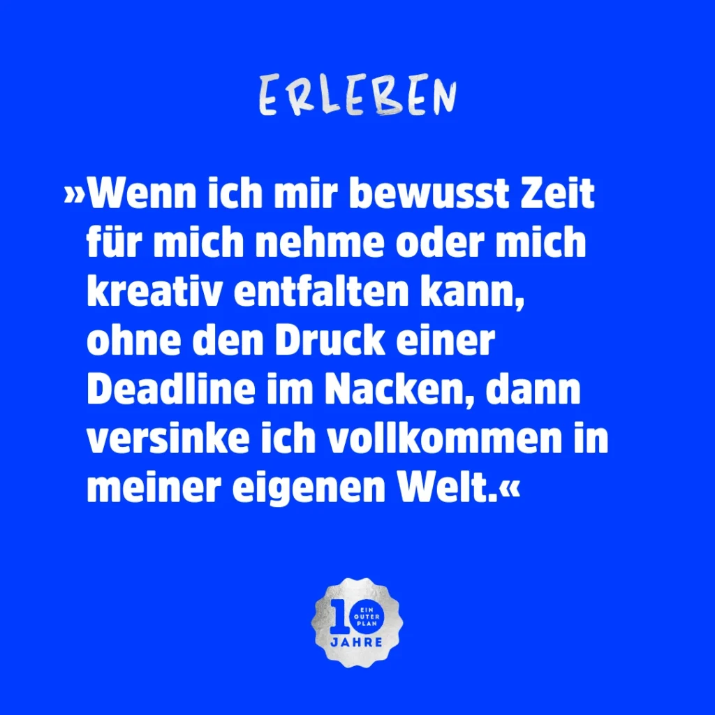 Wir feiern nicht nur unser langjähriges Bestehen, sondern vor allem unsere tolle Community, die mit uns Jahr für Jahr planen, entschleunigt und reflektiert. Daher wollen wir in den kommenden Wochen die schönsten, überraschendsten und bewegendsten Erkenntnisse zu unseren Fragen von dir hören. Folge uns jetzt auf Instagram, lies die Antworten anderer und teile deine eigenen.