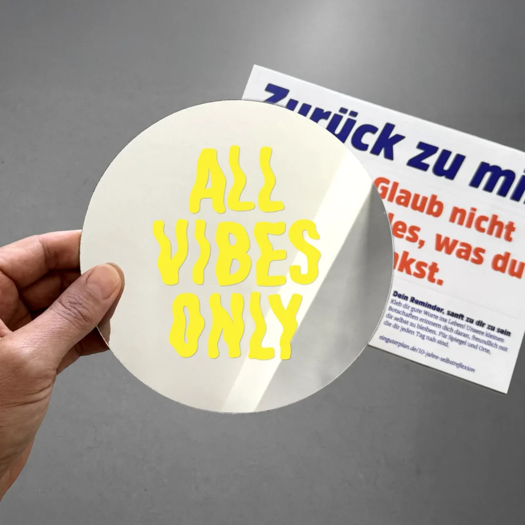 Etwas ganz Besonderes zu unserem 10. Geburtstag. Diese streng limitierte Sonderedition zeigt dir, innen und außen, wer du bist. Denn wir haben das mit der Reflexion mal wörtlich genommen und den Planer, mit dem alles begann, statt in klassischen Leinen in ein funkelndes Spiegelgewand gehüllt. Eine glatte, glänzende Oberfläche und so klar, dass du deine Frisur darin checken kannst. Auch die Innenseiten schimmern dir in einem edlen Silbergrau entgegen.
