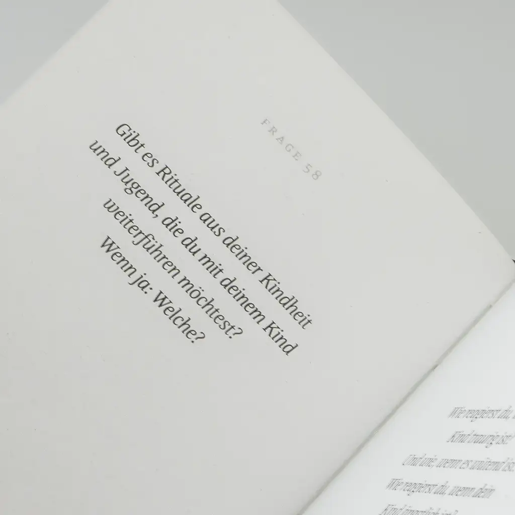 Eine gute Frage für Eltern entsteht in traditioneller Buchdruckkunst in einem deutschen Familienbetrieb.
