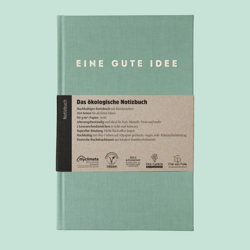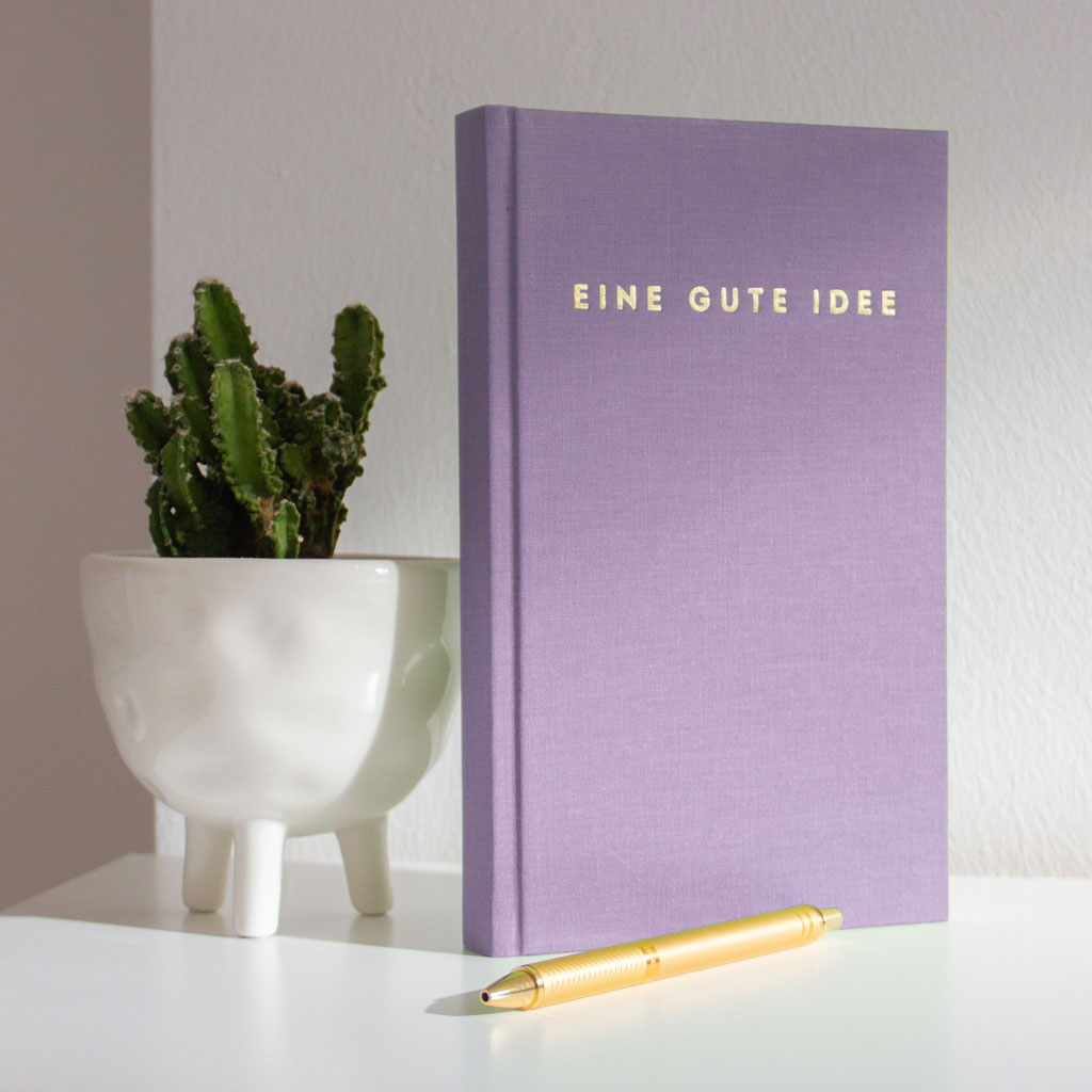 Ich habe “Eine gute Idee” in einem kleinen Laden in Kiel gekauft. Ich mag 1.) das Buch sehr, weil es blanko Seiten hat, was man leider nicht so oft findet, 2.) es nachhaltig ist und trotzdem sehr hochwertig, 3.) Das Layout clean mit einer optischen Veredelung (Schrift) – wow !!! – und 4.) ich die Idee dieses Verlags einfach nur grandios finde !!