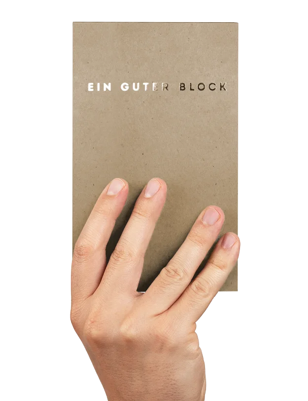 Ich liebe diesen Block mit seiner praktischen Größe und dem auf das Wesentliche reduzierten Design! Der bleibt fester Bestandteil des Alltags. Danke für Eure Arbeit.