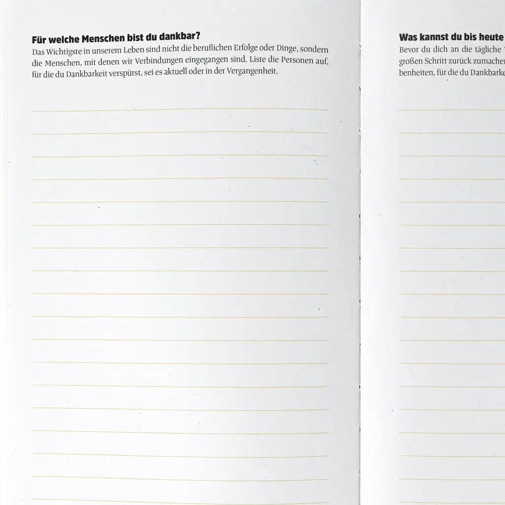 Das Dankbarkeitstagebuch ohne stumpfe Aufrufe, alles immer positiv zu sehen.