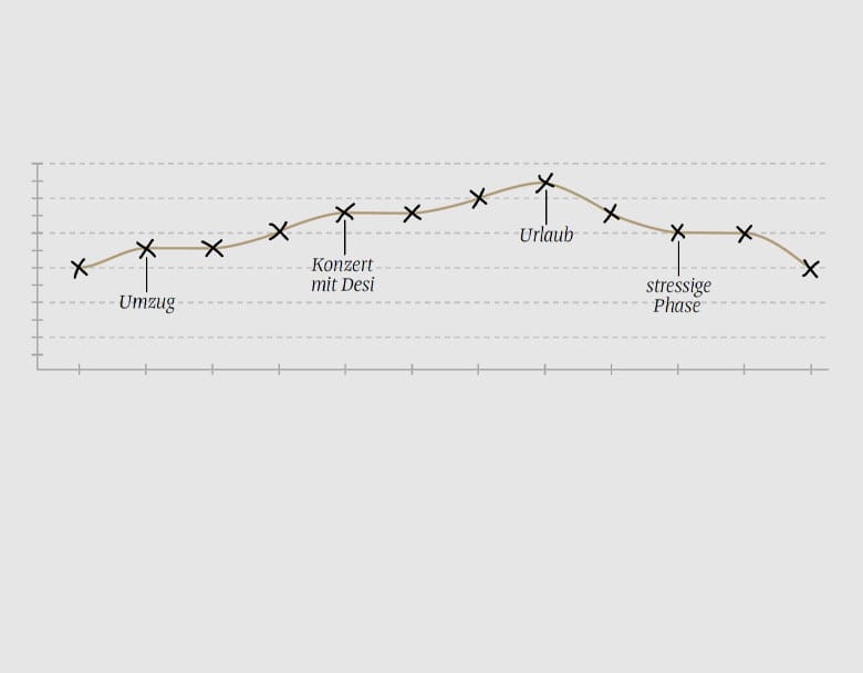 Die größte Veränderung der Gestaltung ist dieses Jahr die Gliederung der Reflexionstechniken in Kapitel. Bisher waren die Techniken recht wild gemischt, nun teilen sie sich auf in »Stand der Dinge«, »Über dich«, »Gewohnheiten«, »Zukunft« und »Tools«. In »Tools« bündeln wir ab sofort alle Reflexionen, die eine kontinuierliche Bearbeitung übers Jahr erfordern. Ganz neu dabei ist die Möglichkeit, die monatliche »Selbstreflexion Psyche« aus den Monatsreflexionen an einem Ort zu tracken. So siehst du nicht nur, wie sich deine mentale Verfassung übers Jahr verändert, sondern kannst besondere Ereignisse ergänzen und damit alles in einen Kontext bringen. Damit kannst du auf einen Blick erkennen, was Einfluss auf deine Stimmung hat.