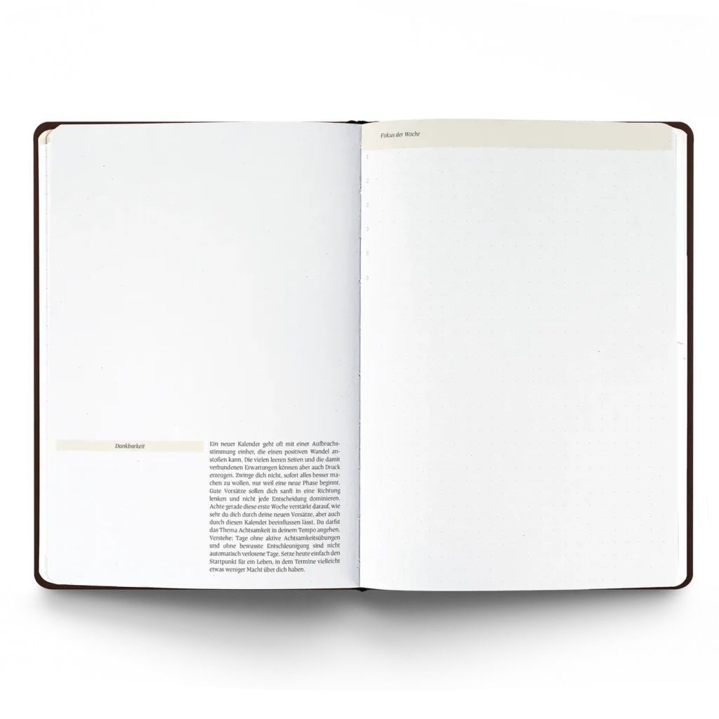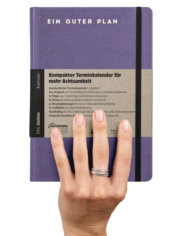Ich nutze Ein Guter Plan jetzt seit Jaahren. Habe mich durch viele verschiedene Kalender-Modelle durchprobiert und Bücher verschenkt. Ich liebe es die Produkte zu nutzen. Für mich hat sich in den Jahren herauskristallisiert, dass ich undatiert am besten arbeiten kann, damit an den Tagen, an denen ich meine Orgastrukturen nicht ganz einhalten kann, keine demotivierenden Lücken im Kalender entstehen. Ich liebe, dass der Pro undatiert die Timestamps hat und jede Kalenderwoche noch eine ganze Doppelseite Platz für Notizen hat. Die können dan auch mal als ne Form journal genutzt werden, um die Achtsamkeit auch auf diese Seiten mitzunehmen. Und die Quali ist auch supi. Ich nutze meinen Kalender eher als Gebrauchsgegenstand und er hält teilweise länger als ein Jahr. Danke für eure schönen Kalender!